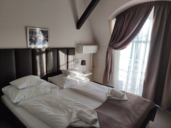 Standard szobáink 2 felnőtt részére komfortosak – az ágyméret franciaágy 180×200 cm vagy kétszer 90X200 cm nagyságú, 20 cm vastagságú matraccal-, igény esetén 1 db pótágy elhelyezést egyes szobákban kényelmesen tudjuk biztosítani. Standard szobáink mindegyike zuhanykabinos vagy kádas fürdőszobával rendelkezik. Ezen szobáink 16 négyzetméteresek, mindegyikükhöz kis méretű terasz tartozik.